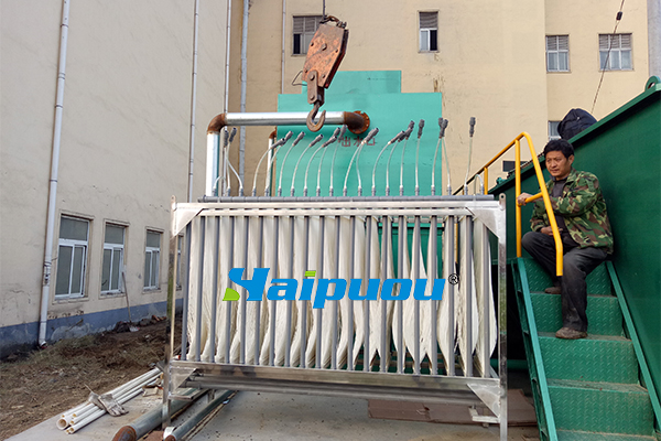 注意:MBR系統(tǒng)正常工作環(huán)境溫度應在5-40攝氏度范圍,環(huán)境溫度低于0攝氏度時,停止運行時必須放掉系統(tǒng)內(nèi)的存水,以免結水,同時清水應完全浸沒膜組片且必須存放在冰點以上環(huán)境中,否則易造成設備和膜組片永久損壞。